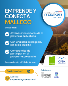 Victoria invita a jóvenes innovadores a participar en “Emprende y Conecta Malleco”