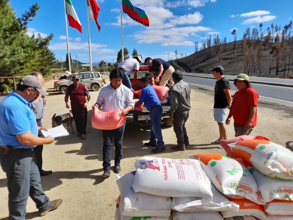 Además, ha entregado cajas de alimentos en Purén y alimento concentrado para animales en Lumaco