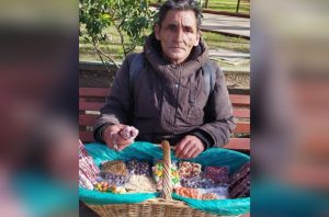 Originario de la comuna de Victoria, recorre con su cesta de frutos secos y otros productos, distintas comunas para así poder tener los ingresos que le permiten vivir