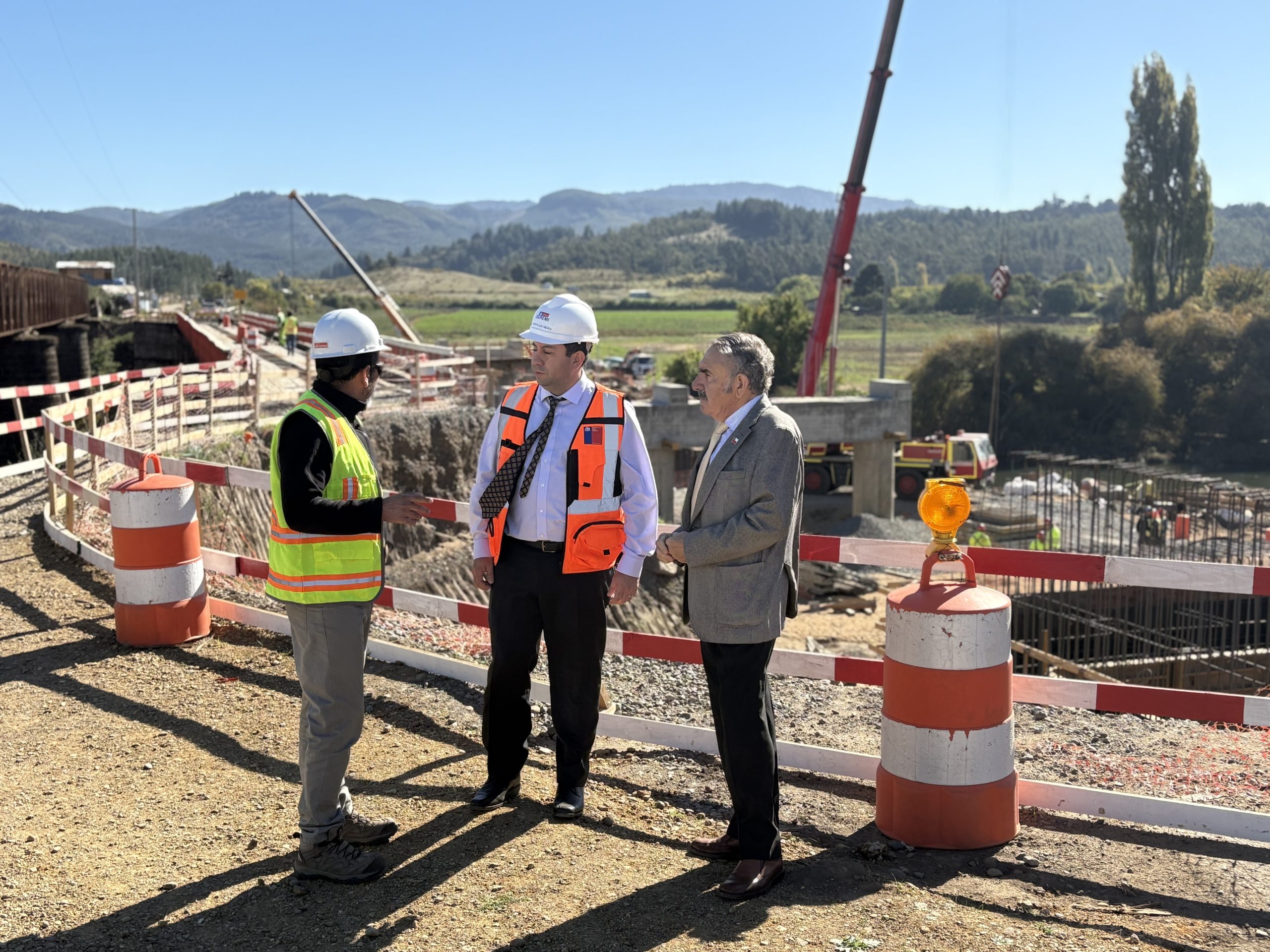 En una visita inspectiva a las obras del puente Malleco, en la comuna de Angol, el seremi de