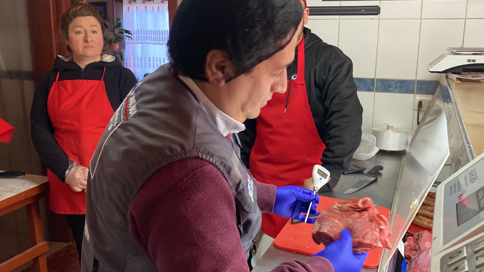 “Estamos en Angol —afirmó— en labores de fiscalización de carnicerías y fábricas de cecinas; nos desplazamos por la ciudad junto a nuestros equipos de Acción Sanitaria de la Oficina Provincial Malleco de la Seremi de Salud, para salvaguardar la inocuidad de los alimentos, particularmente de materias primas como la carne, pero también la preparación de cecinas”.
