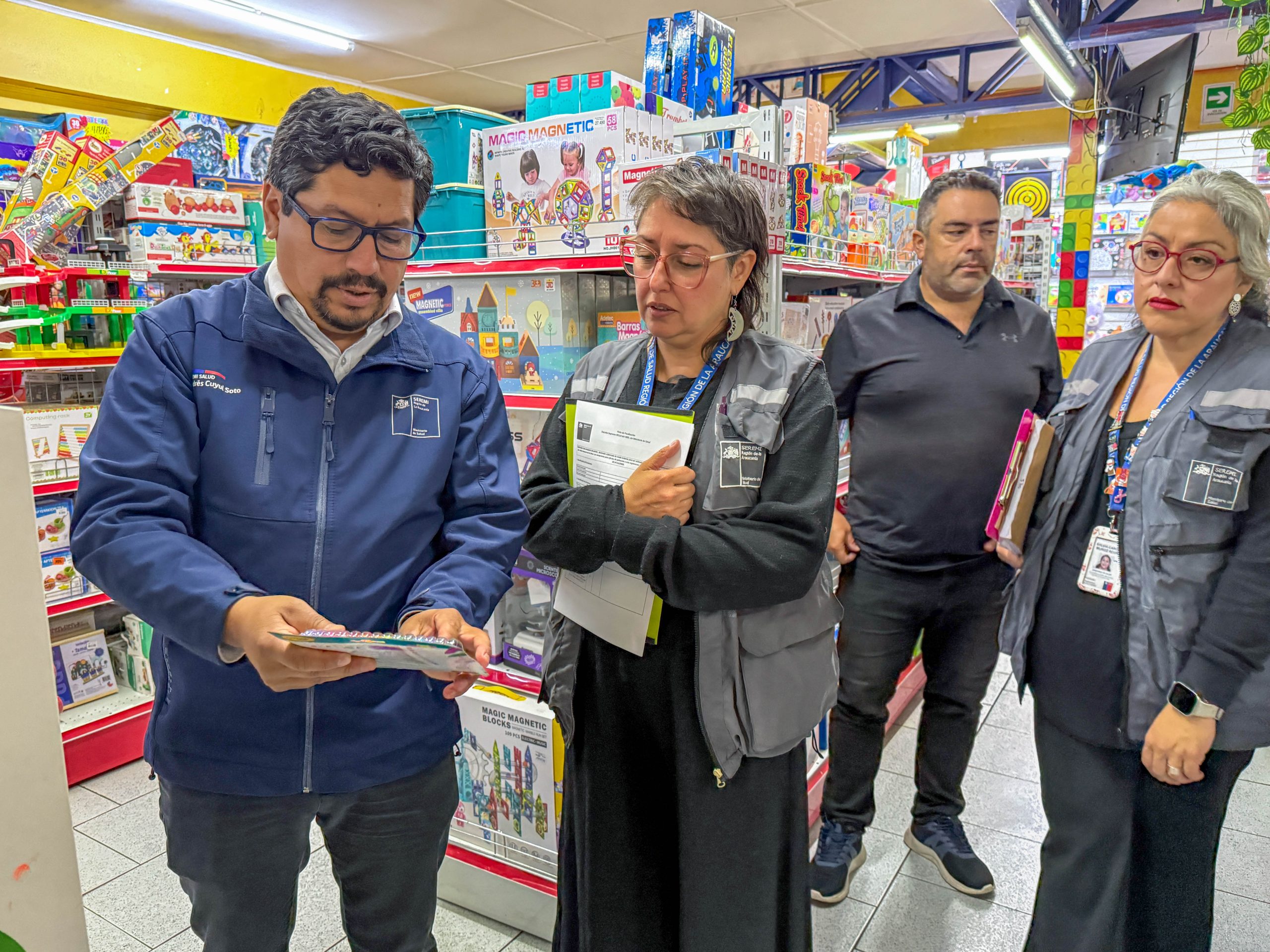 El seremi de Salud de La Araucanía, Andrés Cuyul Soto, junto a fiscalizadores del Departamento de