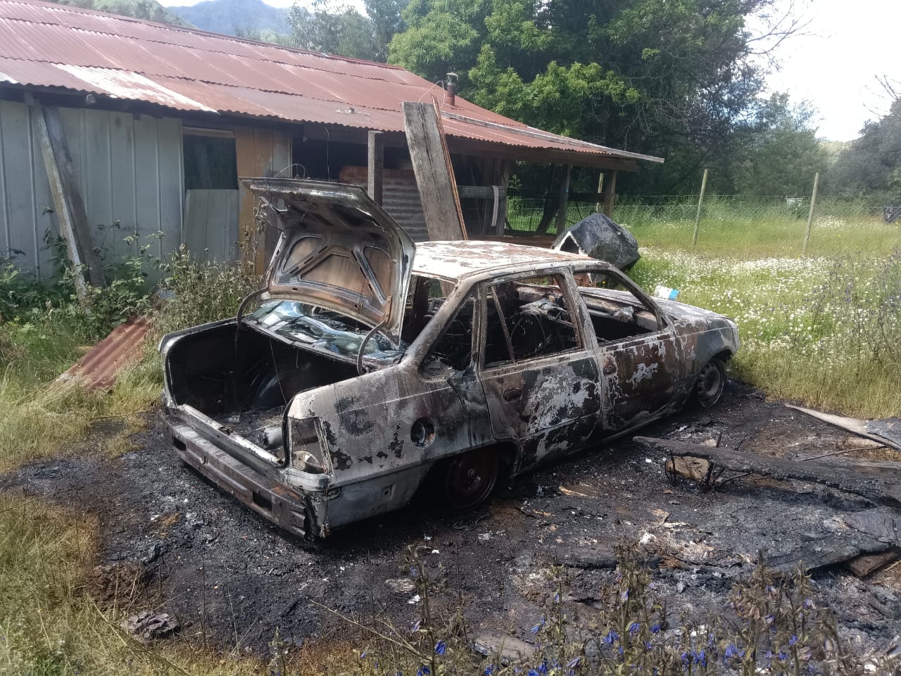 El automóvil siniestrado se encontraba a pocos metros de una vivienda deshabitada, por lo que no se descarta la participación de terceras personas.