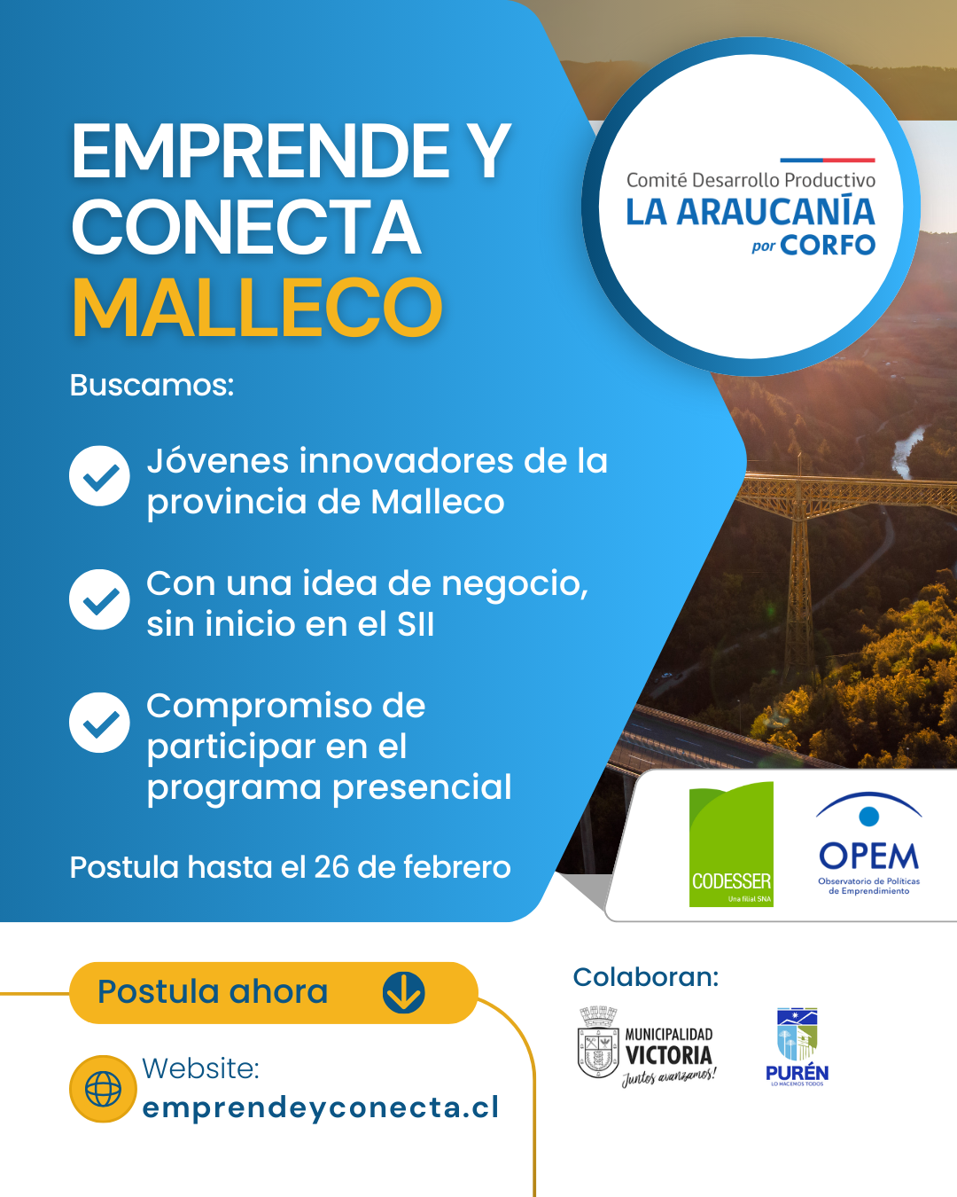 Las inscripciones se realizan en línea a través del sitio oficial: www.emprendeyconecta.cl