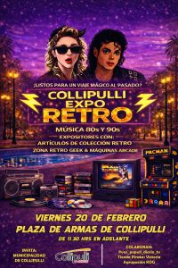 Collipulli se prepara para un viaje inolvidable al pasado. Este viernes 20 de febrero, desde las 11:30 horas, la Plaza de Armas será el epicentro de una jornada cultural y familiar que promete revivir la magia de los años 80 y 90 con la llegada de Expo Retro.
